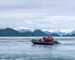 The afternoon brought us to the outwash plain of Baird’s Glacier for some Zodiac and hiking explorations. We landed on the beach of one of the islands formed by the glacier for a short hike along the muddy and rocky shores. The glacier could be seen in the distance, with small pieces of ice in the foreground. The weather graced us with a few drops of rain to wrap up a great day in Southeast Alaska.