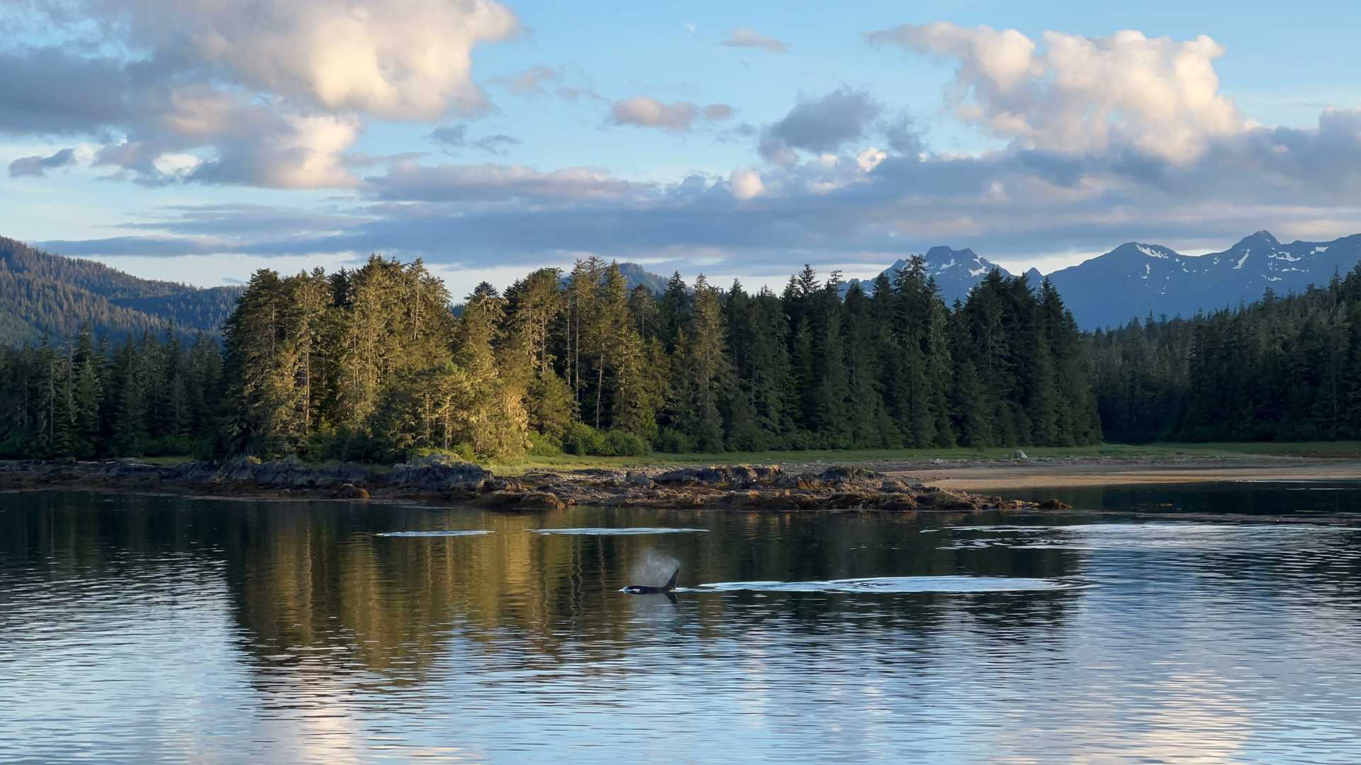 As we made our way again into beautifully sunny, calm conditions, our bridge team slowed and turned the ship back in the direction of Petersburg – killer whales! Cruising along with a large, mellow group of resident killer whales was a wonderful way to round out the day before settling in for an exciting game of Alaska Jeopardy as the sun went down.
