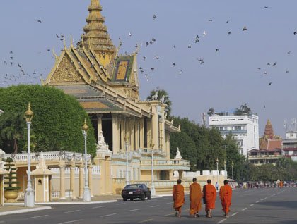 There is something truly magical about watching the sun go up and down while cruising along the Mekong River. On this morning it was even more spectacular than other days as the sun lit up the city of Phnom Penh for us. The highlight even before leaving Jahan was seeing the Royal Palace just off the bank while watching the day-to-day operations of the city starting to commence around this immense structure.