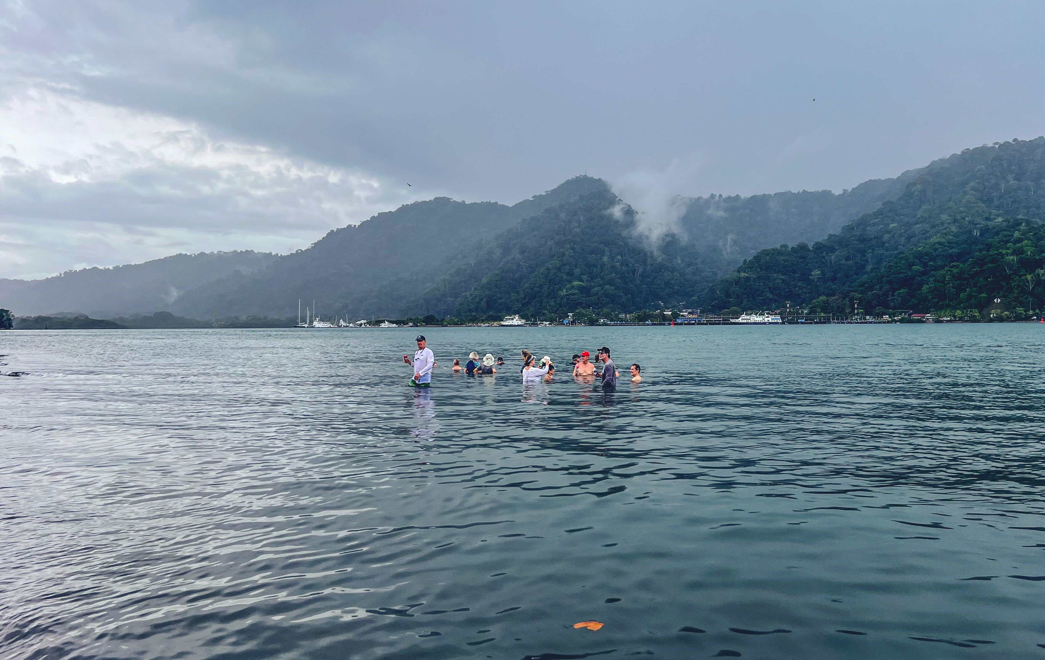 Today was our cultural day in Costa Rica. We arrived early in the morning to Playa Blanca into the calm deep waters of Dulce Bay in southwest Costa Rica. The scenery was breathtaking this morning! Everywhere we looked we were surrounded by low rolling hills covered by a thickly forested green tropical rainforest, no large buildings in sight anywhere, just a few scattered houses here and there.
