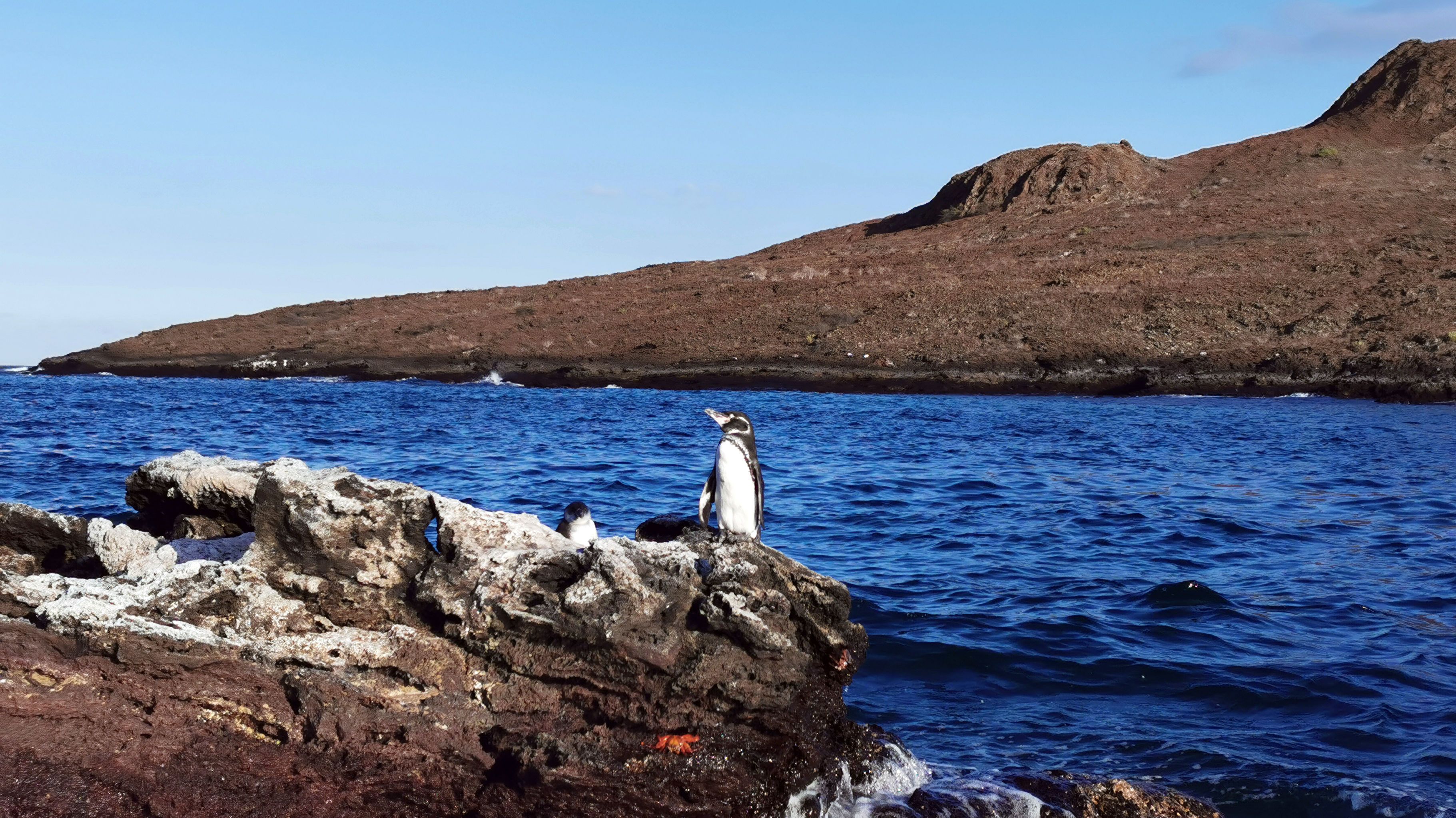 This morning, we embarked on a scenic hike at Punta Pitt, San Cristóbal Island, where we found all three booby species - red-footed, blue-footed, and Nazca. We also took a Zodiac ride along the rugged coastline for close-up views of dramatic cliffs, surrounded by seabirds and sea lions basking in the sun. In the afternoon, we kayaked around Cerro Brujo’s golden cliffs, followed by a relaxing stroll along its pristine white-sand beach. Some even enjoyed a refreshing swim in the turquoise waters. This perfect day ended with a cruise around Kicker Rock, lit in the golden light of sunset.