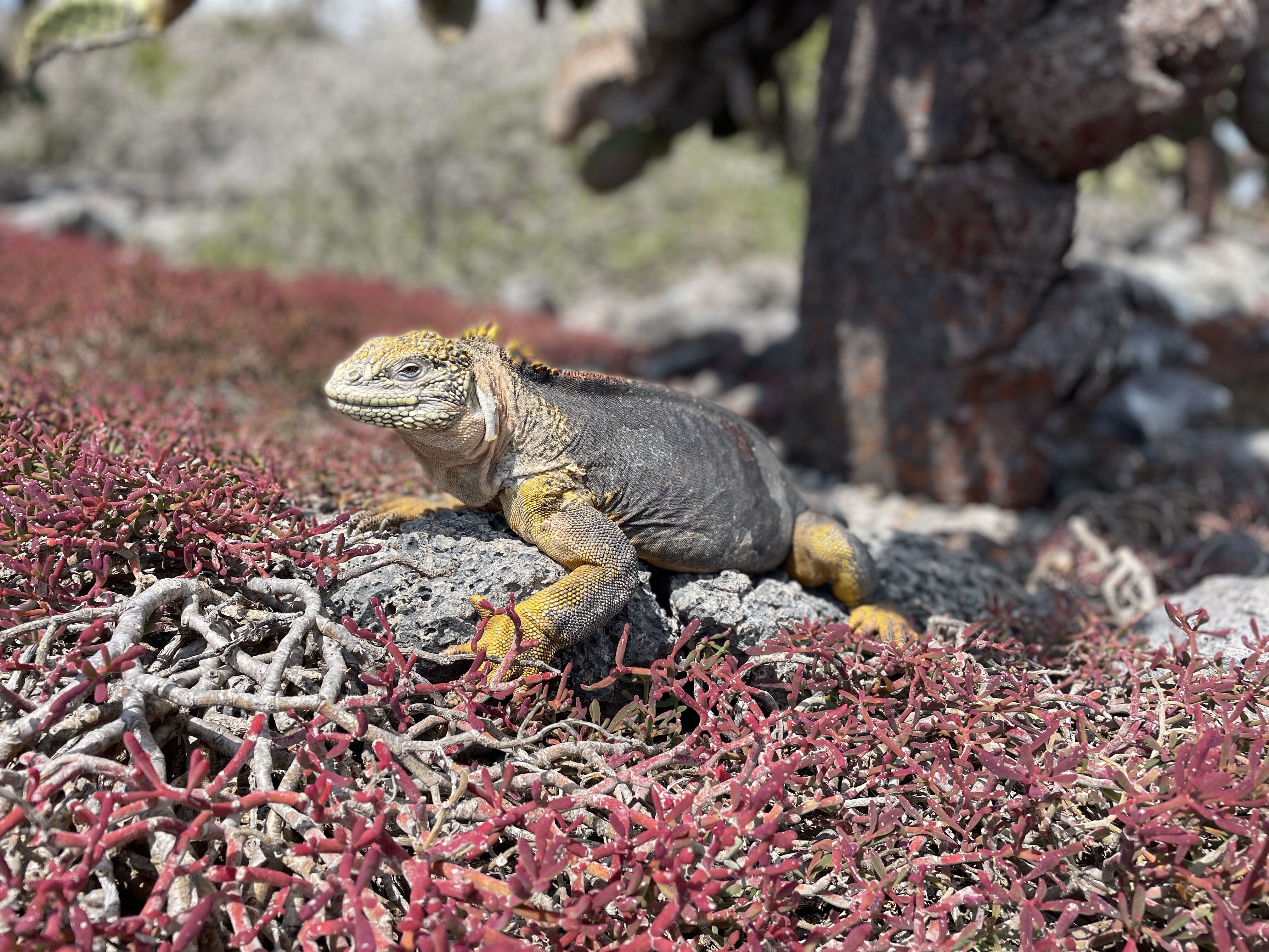 As we walked farther along the trail, we spotted a land iguana feeding on prickly pear cactus. This is the main source of food during the dry season, and the island is really dry right now. What a great sighting, as this is something we do not get to see every day.
