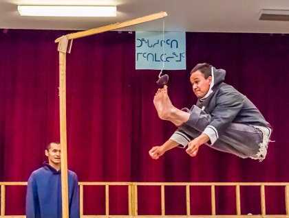 A couple of extremely agile young men demonstrated some Inuit games. One of these involves each contestant jumping vertically from an almost horizontal position while balancing on one hand and kicking a model seal suspended at varying heights from a wooden frame. This calls for incredible balance, strength and coordination. The record for this is apparently over nine feet. Throat-singing by young women, bedecked in traditional costumes, followed on from this and was absolutely captivating. The performers proudly showcased the culturally rich heritage of their Inuit community.