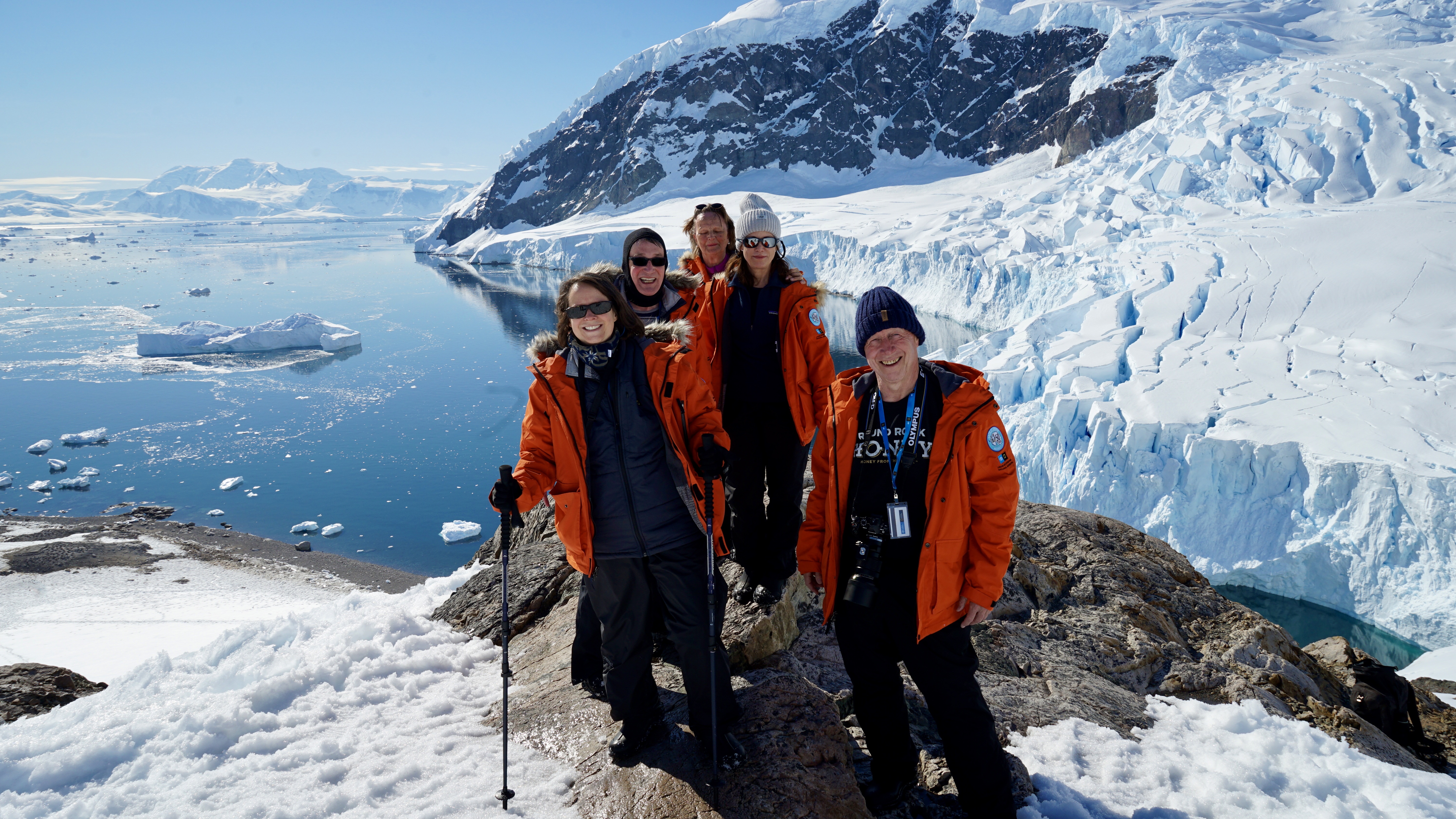 Our afternoon was spent at the spectacular location of Neko Harbor. Surrounded by gentoo penguins, nesting skuas, and cloudless skies, we were able to hike to an incredible vantage point of a nearby glacier, from where we had the rare view of Mount Francis gleaming in the distance towards the horizon.