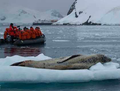 Across a small stretch of water lies Jougla Point where the venerable remains of several species of cetaceans, left from the bygone days of whaling, can be explored close up. The massive bones and skulls, now strewn along the shoreline, give us a glimpse into the sheer size of the animals that we have been so fortunate to observe over the course of our journey. The weather picks up, and we are escorted to Paradise Bay by a large pod of killer whales that are unaffected by the winds that fail to keep all onboard from crowding onto the bow for an up close view. Good to its name, our afternoon destination is calm and protected, surrounded by towering peaks with glaciers that run down to the water. Humpback and minke whales playfully surface around our Zodiacs while leopard seals regard us curiously from atop drifting icebergs they make look entirely comfortable. Each moment is delightful on its own, but when woven together with the rest of the day that forms a chapter of our voyage, it is even more remarkable as a whole. Like the postcards mailed from the end of the world that will slowly make their way to destinations far and wide, it is not the photo that is the most meaningful, it’s the journey it took getting there.