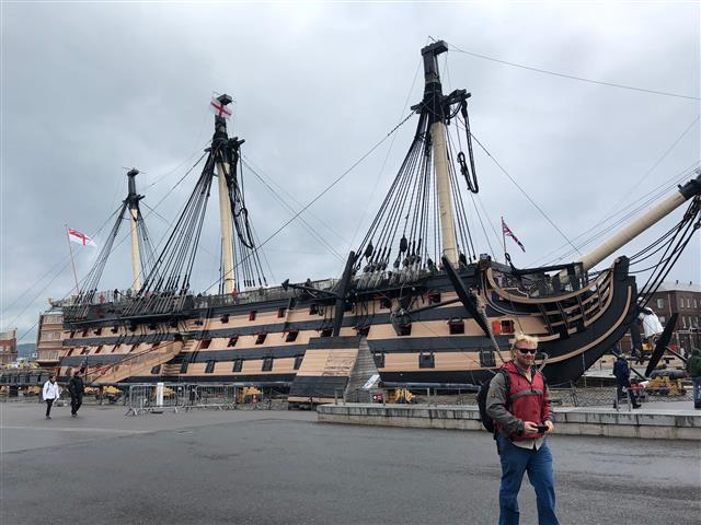 The rest of us spent the morning in the Portsmouth Historic Dockyard, home of iconic British Navy ships. We visited the HMS Victory, Lord Nelson’s flagship, a wonderful example of a first-rate ship of the line of the Royal Navy. We also explored the Mary Rose museum, home of the remains of the Mary Rose and its extraordinary collection of Tudor artifacts. This exhibition is of exceptional quality and is recognized worldwide as a state-of-the-art museum for maritime archaeology.