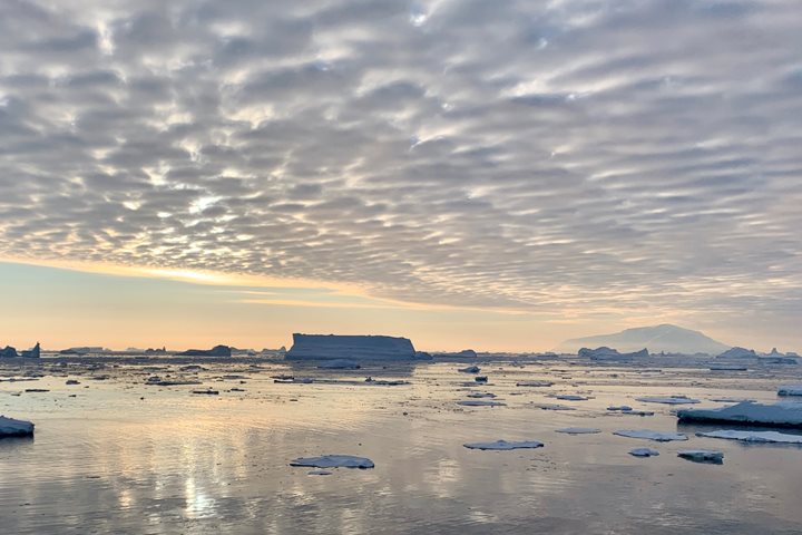 Marguerite Bay is an extensive bay on the west side of the Antarctic Peninsula, which is bound on the north by Adelaide Island and on the south by Wordie Ice Shelf, George VI Sound, and Alexander Island. During the afternoon, we explored the inside of this bay looking for fast ice for a possible Ice walk. We sailed passed Nemo Cove, Nautilus Head, and Ridge Island. Right after lunch, the great news came over the PA system: “We found the perfect spot!” Approaching the ice, we could already sea dozens of seals on this vast frozen sea water fastened to the shore, hence “fast ice.” The National Geographic Resolution approached the ice in the most gentle and smooth way—and without even feeling a bump, there we were, surrounded by ice. It was unbelievable. Our penguin doors at the bow of the ship opened, and we got to explore this immense ice landscape surrounded by high peaks of mountains and magnificent glaciers.