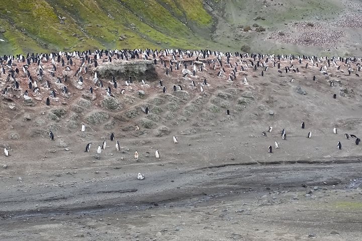 The first landing of our voyage was incredible. We started our morning at Pourquoi Pas, a mountainous island, 27 km long and about 13 km wide, where Adelie penguins, skuas, and colourful lichens awaited us. Discovered by the French Antarctic Expedition under Charcot (1908–10), this island was charted more accurately by the Belgian expedition under Rymill (1934-37) who named it for Charcot's expedition ship, the Pourquoi-Pas? (“Why not?”)