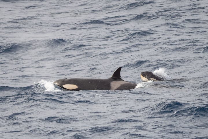 We had great fun photographing the ship parked on ice and walking as far as the eye could see. We even got to admire Weddell and crabeaters seals resting on ice. The crabeater seal is by far the most common pinniped and possibly the most abundant large mammal in the world. They actually do not eat crabs. Instead, they feed almost exclusively on Antarctic krill. The Weddell seal is the only mammal to remain in Antarctica through the winter. It is the most southerly breeding of all mammals, and one of the best-known Antarctic seal species. They feed mainly on fish, including the large Antarctic cod, as well as squid, octopus, and crustaceans. When hauling out, they remain close to their access hole on top of the ice. We were very lucky to see a seal poking its snout in and out of the hole.