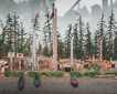 This lock and key construction was used throughout the museum complex and as we wandered from exhibit to exhibit we were surrounded by the smell of cedar and the visual of cedar posts and poles in and around and over-head! Each room was filled with extraordinary displays and explanations of the First Nations of the northern part of British Columbia. Regalia from earlier times was mixed with modern pieces created by current artists of the area. After a comfortable wander through many of the galleries, many of us took an opportunity to explore Prince Rupert…admiring the mural art on many buildings, exploring small parks and watching the comings and goings of this natural harbor and important port city.