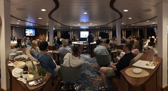 It was a day for reflection. Our journey was coming to an end as we left the Falklands behind and National Geographic Endurance steamed towards South America and Ushuaia. The seas were kind to us, and despite low winds, we had black-browed albatross, among other birds, around us. In the morning, we listened to the naturalists onboard as they presented on different subjects in the ice lounge. Land-ho! Mid-morning we had land in sight, South America was appearing on the horizon. Upon entering the Beagle Channel, we saw possibly a hundred sei whales. While the seabirds were waiting for the wind on the surface, the whales were feeding a short distance from the ship. As our vessel waited for the pilot to arrive, we could still see whale blows in the distance. We enjoyed a teatime extravaganza with Chef Sara and her team. Cheese and wine brought most of the ship’s inhabitants to deck 8, and while sipping wine we watched sea lions, dolphins, and stunning views of Tierra del Fuego go by until it was time for Captain Aaron’s farewell toast. As much as we are reflecting on our expedition today, it has also been a day of celebration! It has been an incredible journey of many miles, great people, and wonderful experiences. Thank you all!