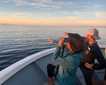 Our morning began onshore with guided walks through the arroyos and along the bright red sandstone of the shoreline. As we discussed the geology that makes this place so desolate and otherworldly, a display offshore interrupted us: a megapod of short-beaked common dolphins surrounded the ship. We quickly took to our Zodiacs to play within the megapod and get a closer look at the dolphins. They surfed in our wake and breached out of the water around us. Later, we returned to the beach to continue our exploration of the coastline’s tide pools. We took a look underwater with guided snorkels among the coral heads and reef fish.