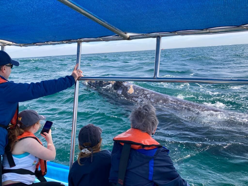 We took full advantage of the beautiful weather today and went whale watching in both the morning and the afternoon. Our lovely pangueros picked us up bright and early, and we set out for a day full of gray whales. Here to breed and give birth to calves, these gray whales have a reputation for getting incredibly close to boats. We observed spy-hopping and breaching. It was a special day in the lagoon of Magdalena Bay.