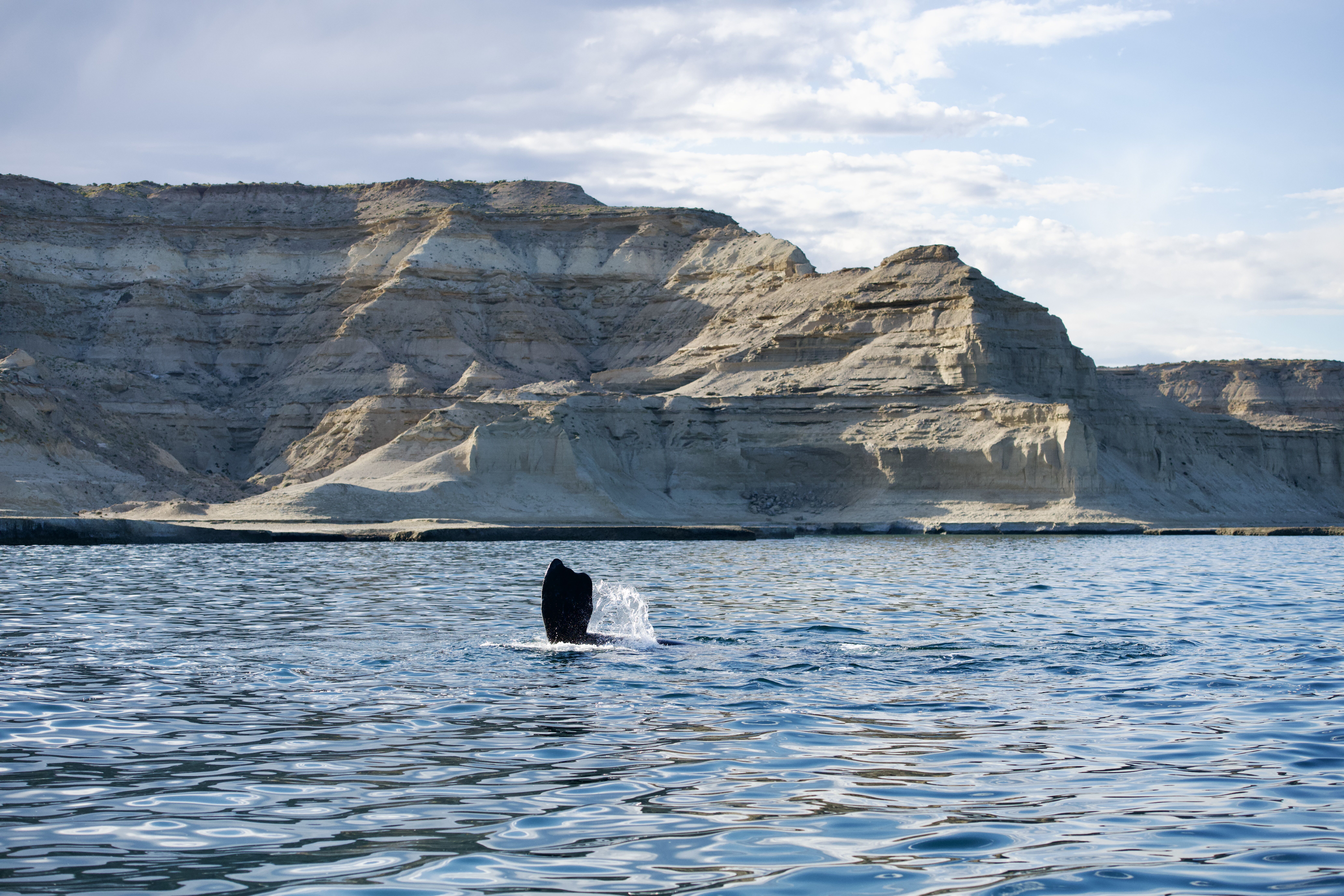 After an hour drive, we arrived at Puerto Pirámides. We donned our life jackets and climbed in the boats, which were driven out of their cradles by a tractor. We were finally on the beautiful, calm waters, and we headed off in search of whales. Soon enough, our whale spotters announced that they sighted one of the giants, a female with her calf. Over the next hour, we were in awe as we witnessed tail-lobbing, breaching, animals turning upside down, and pectoral fins slapping the waters. We enjoyed many close views of giant heads covered in callosities as the whales rose to the surface to breathe. On one occasion, a boisterous calf nudged one of the boats. The warm sunshine lit up the scene perfectly.