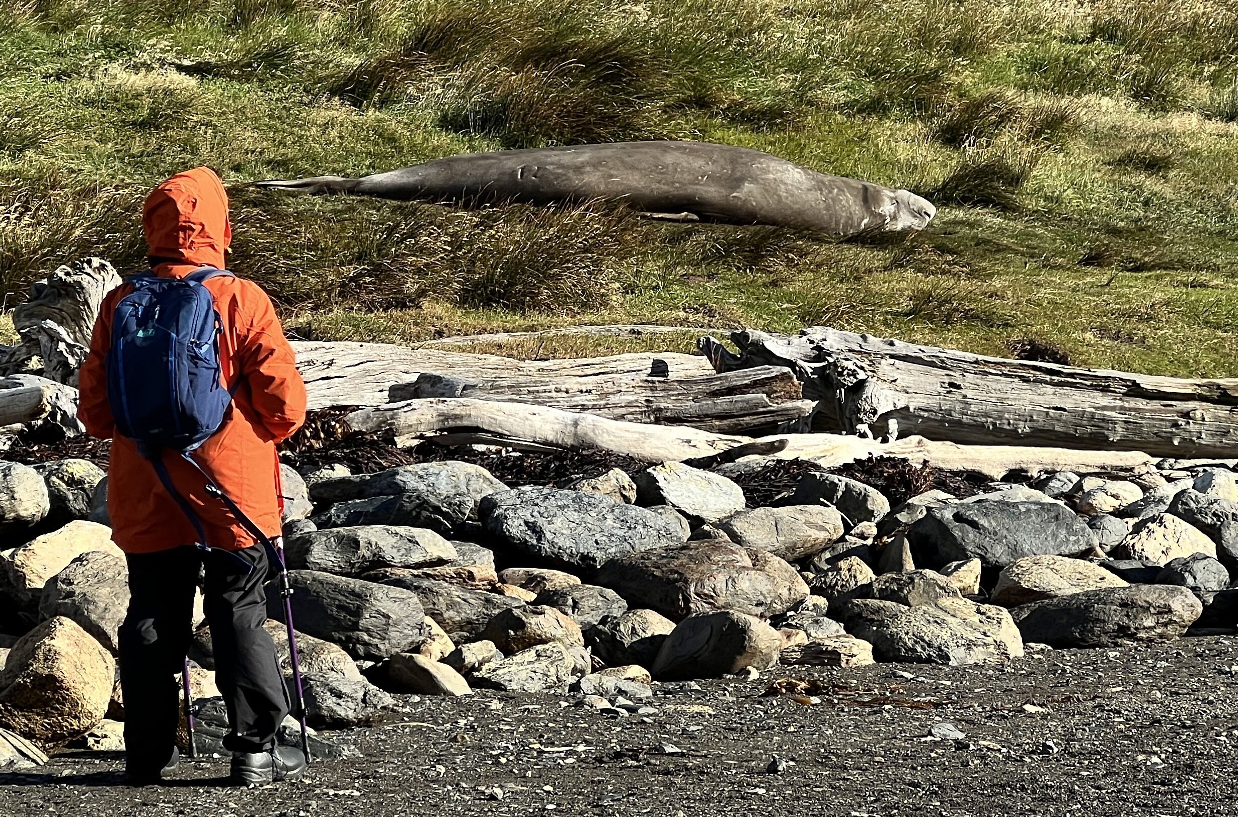The wind was so strong overnight that we arrived slightly delayed to our destination of Puerto Profundo. The dive team went scuba diving in some gorgeous kelp forests while guests got nearly as wet during two rounds of particularly rainy Zodiac cruises. Our surrounding scenery was so majestic, and a few lucky people caught glimpses of bow-riding Chilean dolphins! Back on board, we dried out, ate lunch, and cruised to our next breathtaking destination. At Seno Glacier, we all set out to explore the fjords by Zodiac cruises and even ventured up a riverbed. The rain continued to pour, the many waterfalls gushed, and wet fingers struggled to take pictures on phones as we all became drenched. A few lifejackets even got so wet that they automatically expanded!