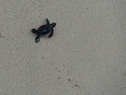 After lunch we spent the afternoon in Cerro Brujo, a nearby tuff cone. Our purpose was to enjoy the coralline beach. We also saw wildlife: Sea lions, blue-footed boobies, terns, pelicans, ghost crabs... and baby sea turtles coming from the nest and running into the ocean!!! It was a great adventure. At the end of the afternoon everyone was very happy, and together with an impressive sunset as the background, we concluded our last day in paradise.