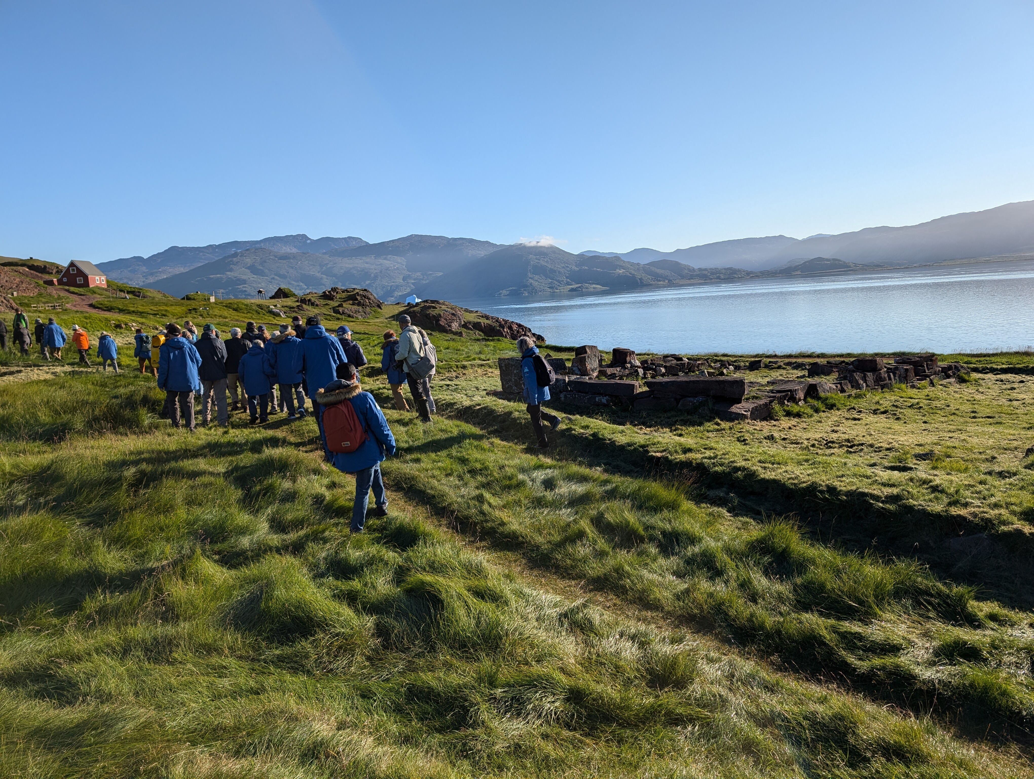 Ever wonder why they call it Greenland? Today our guests on National Geographic Endurance got to find out, as they discovered the verdant bucolic slopes of Qassiarsuk. Originally founded by legendary Norseman, Erik the Red, as a farming settlement, the area is home to Viking Age ruins and a small, recreated, sod-roofed settlement overlooking a stunning view of the fjord. Although the Norse mysteriously abandoned Greenland around the year 1450, the farming tradition of these lush slopes was reinvigorated in 1924 by Otto Frederiksen. Today, the area celebrates a rich farming culture as livestock graze upon the abundant grassy hills.