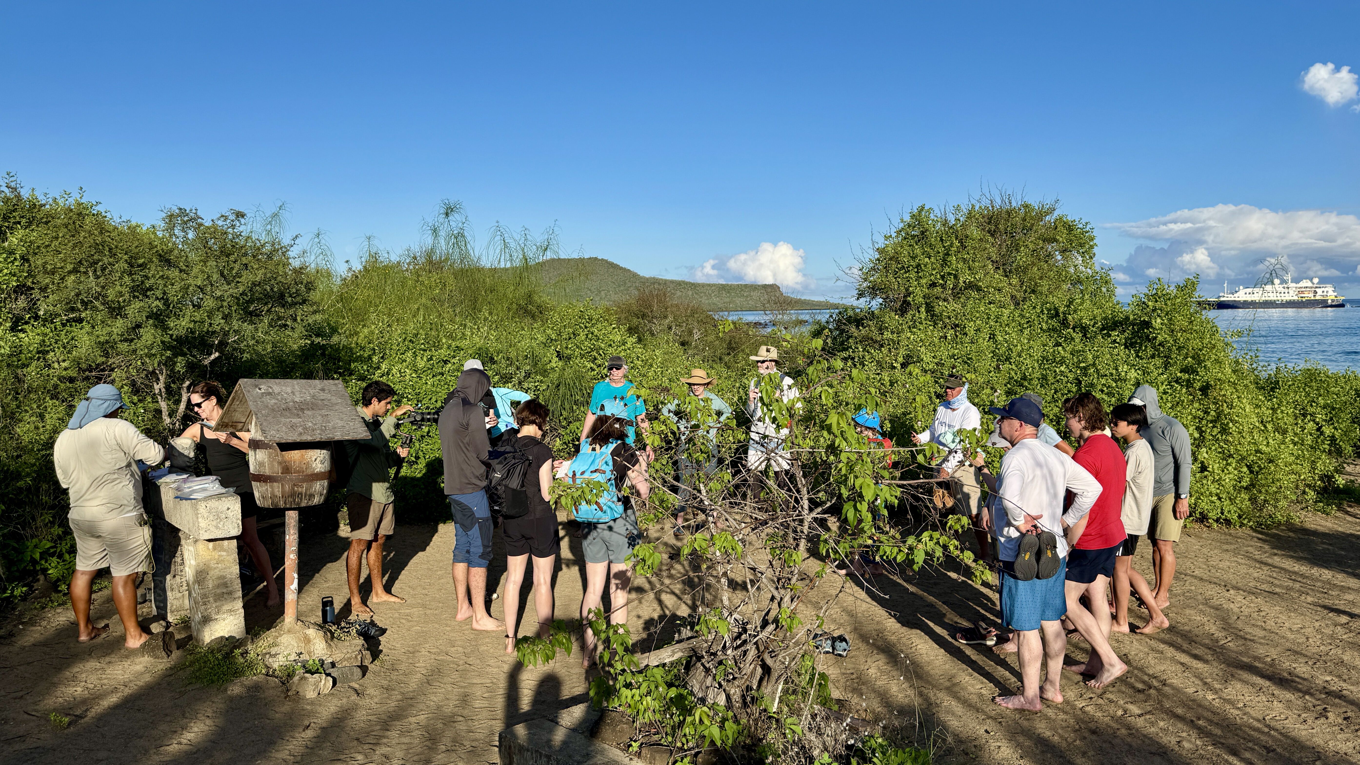 We started the day with excitement as we landed on the beautiful, pristine coast of Isla Genovesa - a true birder’s dream. Along the sandy beaches and steep cliffs of Darwin Bay, we were surrounded by an incredible array of birdlife. Frigatebirds soared closely overhead with their red pouches on full display, while Nazca and blue-footed boobies nested along the rocky ledges. Swallow-tailed gulls called out as we walked past. In the distance, we saw the stoic and elusive short-eared owl. The island was alive with color, sound, and constant movement. Between our excursions to Isla Genovesa, we snorkeled near Prince Philip’s Steps and discovered a vibrant world beneath the waves. Schools of fish swirled around us, a fur seal turned in the water as if dancing on cue, and sea lions relaxed nearby. As our last snorkeling adventure came to a close, we spotted a sea turtle resting calmly in a crevice. As the sun retreated into the sky on our last return to National Geographic Endeavor II, we reflected on the sheer magnitude of what we witnessed on our last full day. Isla Genovesa, like the other islands, gave us a connection to a sacred world. The harmony between land, sea, and sky reminded us how deeply interconnected, vital, and fragile these ecosystems are. Watching birds tend to their nests and marine life swim effortlessly, we were struck by how little space there is between wonder and reverence. We recognized that our journey wasn’t just about observing unique wildlife, it was about feeling part of something grander and beautifully ancient.