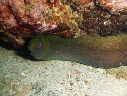 Bicolored parrot fish were taking chunks of the coral as this is their food source. Known as one of the species in which the female can change its gonads to become a male, once removed, this is a one way act with no return. Moorish idols, angel king fish, guinea fowl puffer fish, Mexican goat fish and more showed up to paint of color the undersea.
