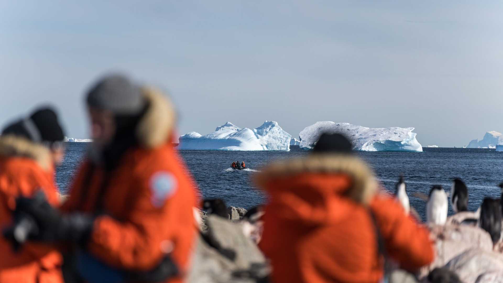 We awoke to an astonishing view of Marguerite Bay as we slowly cruised between icebergs and humpback whales towards our first excursion. Our first day landing on the Antarctic Continent at Red Rock Ridge was nothing short of breathtaking. The day unfolded like a dream, starting with a beautiful visit to an Adélie penguin colony. These charming, resilient birds captivated us as they waddled across the rocky terrain along with their downy chicks.