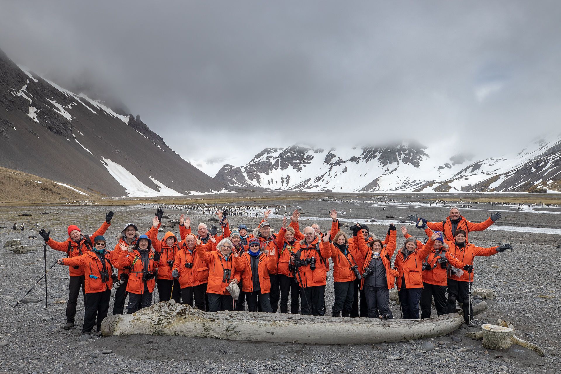 We arrived in Right Whale Bay with a splash. We saw a small but majestic king penguin colony and nearby, a skua. Ferocious fur seals covered the land and caused a ruckus among the penguins as we cautiously hiked by. Along the way, we saw the remnants of a blue whale, as well as an explosive harpoon used for whaling many years ago. On our hike back to the Zodiacs, many guests took photographs near the large whale vertebrae that sat among the elephant seals.