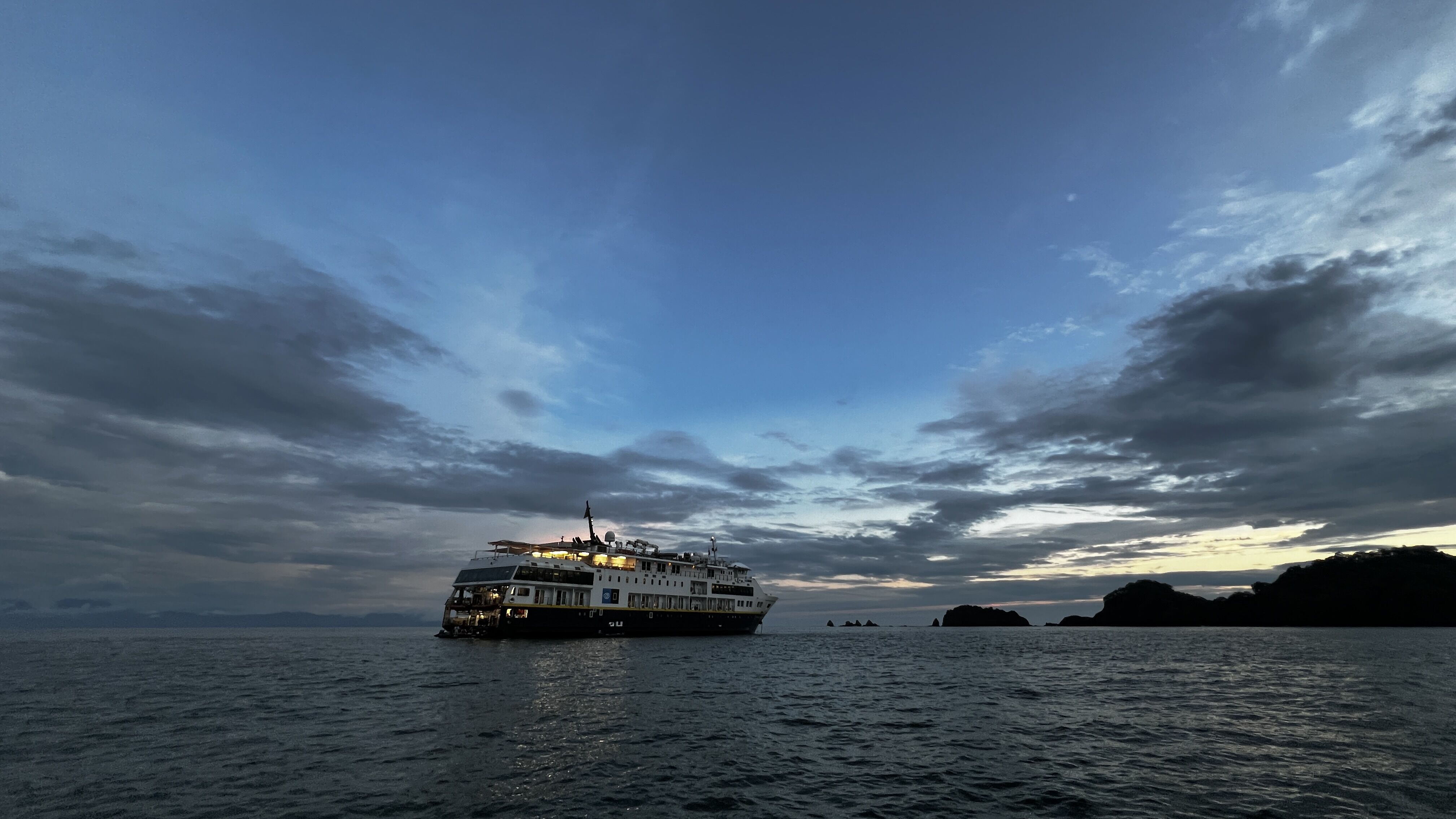 It was our first day of activities on board National Geographic Quest, and what a way to start our journey! If there was a morning to enjoy nature, it was today, and everybody had the chance to appreciate a little of everything. We went for Zodiac rides on the Agujitas River, with wildlife sightings of trogons, toucans, Jesus Christ lizards, monkeys, herons, great green iguanas, sloths, and more. Everything was right there at the edges of the water, with the rainforest as a backdrop, accompanied by beautiful weather.