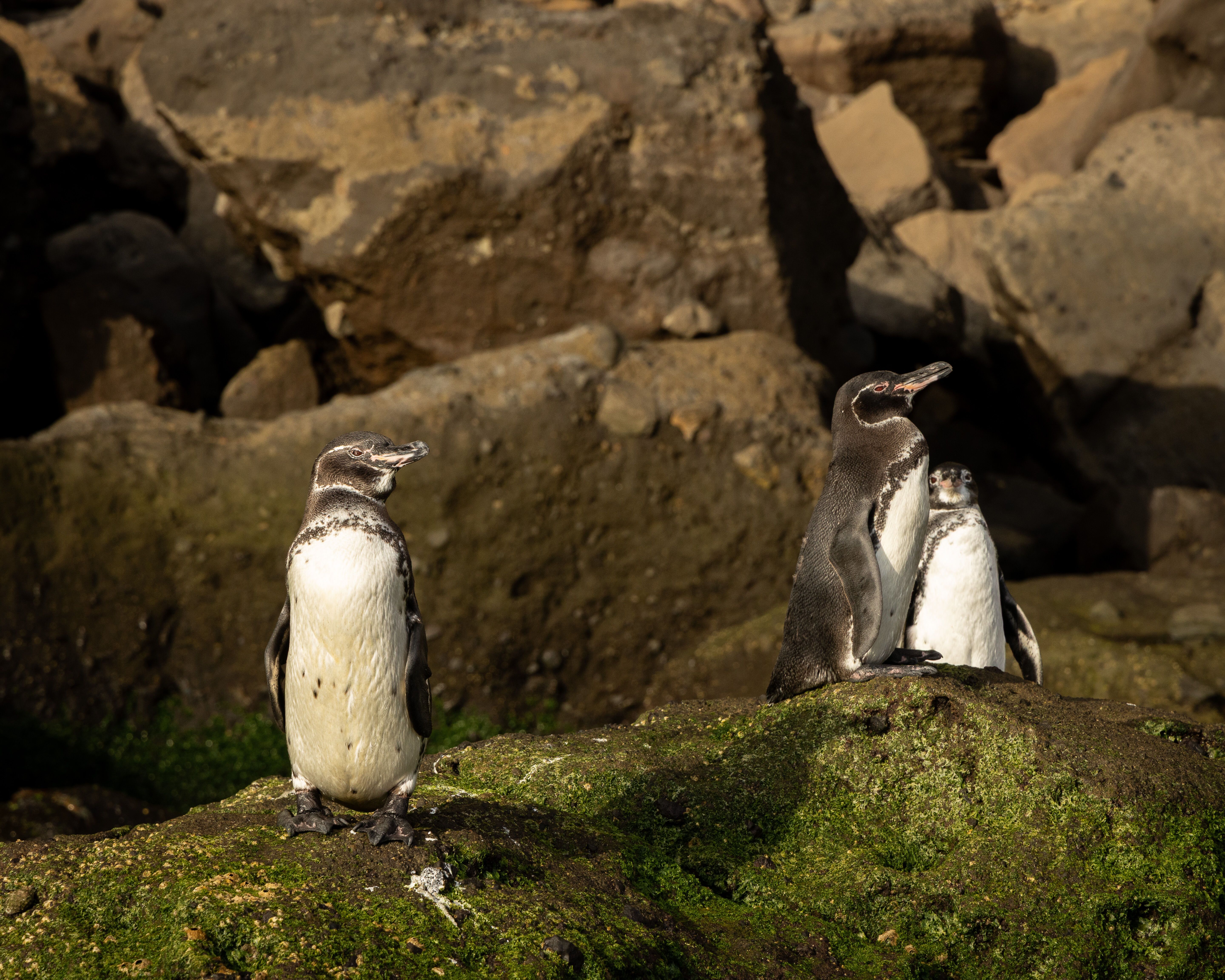 Later, at Punta Vicente Roca, the northwesternmost tip of Isabela Island, we followed the coast closely in Zodiacs. Fur seals, marine iguanas, Galapagos sea lions, blue-footed boobies, and brown noddy terns rested on the ledges. The afternoon on shore was marine iguana central and one had to watch where one stepped. Our outing was complete when penguins finally made their appearance along the shore.
