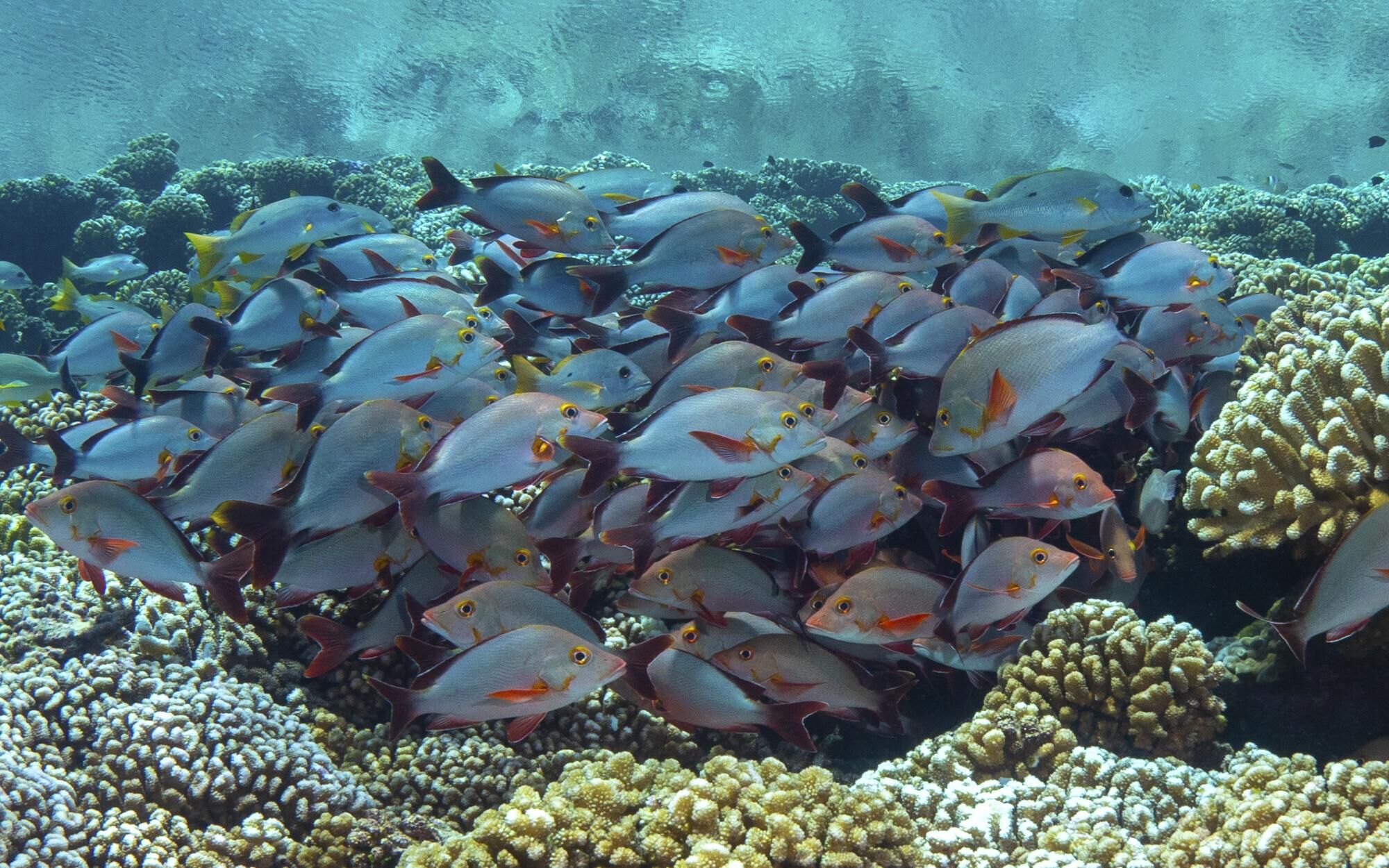 In the afternoon, National Geographic Orion relocated to the neighboring island of Toau. We ended the day by snorkeling from the platform. We had the reef to ourselves in the middle of the lagoon.