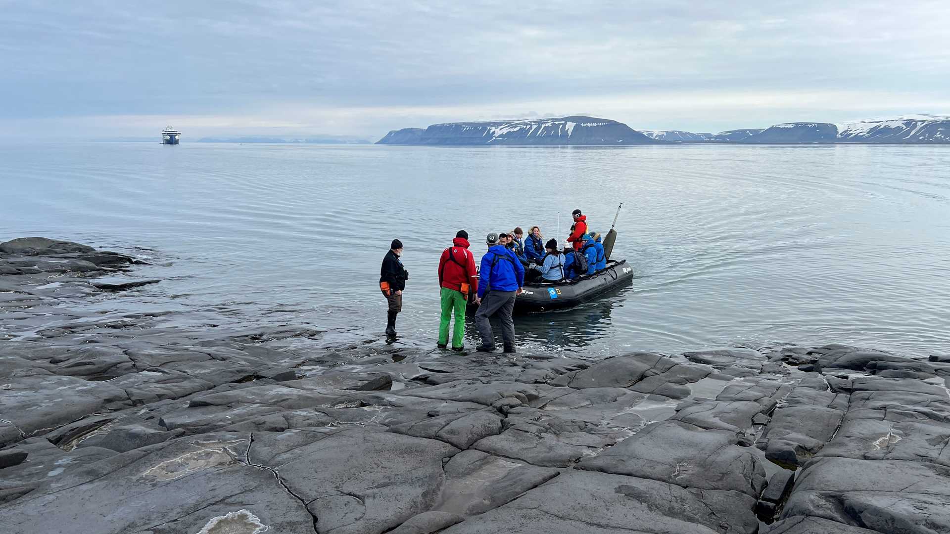 Today, the Norwegian Weather Service predicted that all of Svalbard would be covered by dense, low-lying fog. Indeed, it was a ‘fog-out’ during the early morning hours. The collective magic of guests on board National Geographic Endurance came through again, and we woke not to fog but to calm seas, no wind, and partly sunny skies. Just after breakfast, we went ashore on Edgeøya for the standard long, medium, and short hikes. At first glance, the area was stark, just a slightly undulating rocky area with no prominent features. But a closer look revealed a lush groundcover of mosses and lichens and very small plants with even smaller flowers. The reason for the small ‘lawn’ was obvious: perhaps a hundred, widely-dispersed reindeer were observed in the area, each one calmly grazing on those mosses and lichens that were a bit too high off the substrate. We walked over ancient magma split by the constant freeze-thaw of the permafrost, and we sloshed through small bogs created both by the melting active layer above the permafrost and the snow melt. By midmorning, the few clouds disappeared, and we began shedding layers. We had absolutely stunning conditions despite the dire weather conditions that were predicted (and indeed, did occur everywhere on Svalbard except where we were). This was undoubtedly due to the guests’ magic.