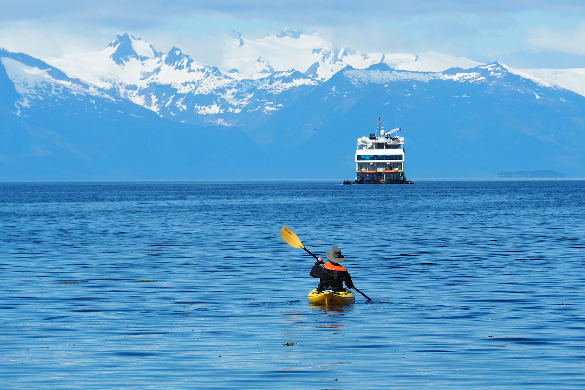 Making our way to our anchorage in Saginaw Bay, we had sightings of humpback whales before breakfast. A blue bird day welcomed us to our landing ashore, where adventurous hikers set off for a full morning “bushwack,” exploring through the forest without a trail, while others took advantage of the extreme low tide to marvel at the wonders of life in the intertidal zone. Glass calm waters and a stunning view of the snow-capped mountains beyond National Geographic Quest offered the perfect setting for kayakers and stand up paddle boarders. Meanwhile, our undersea team dived into the clear waters below to document the underwater world. Colorful, cryptic, weird and wonderful – Saginaw Bay proved to be as beautiful below the water as above.