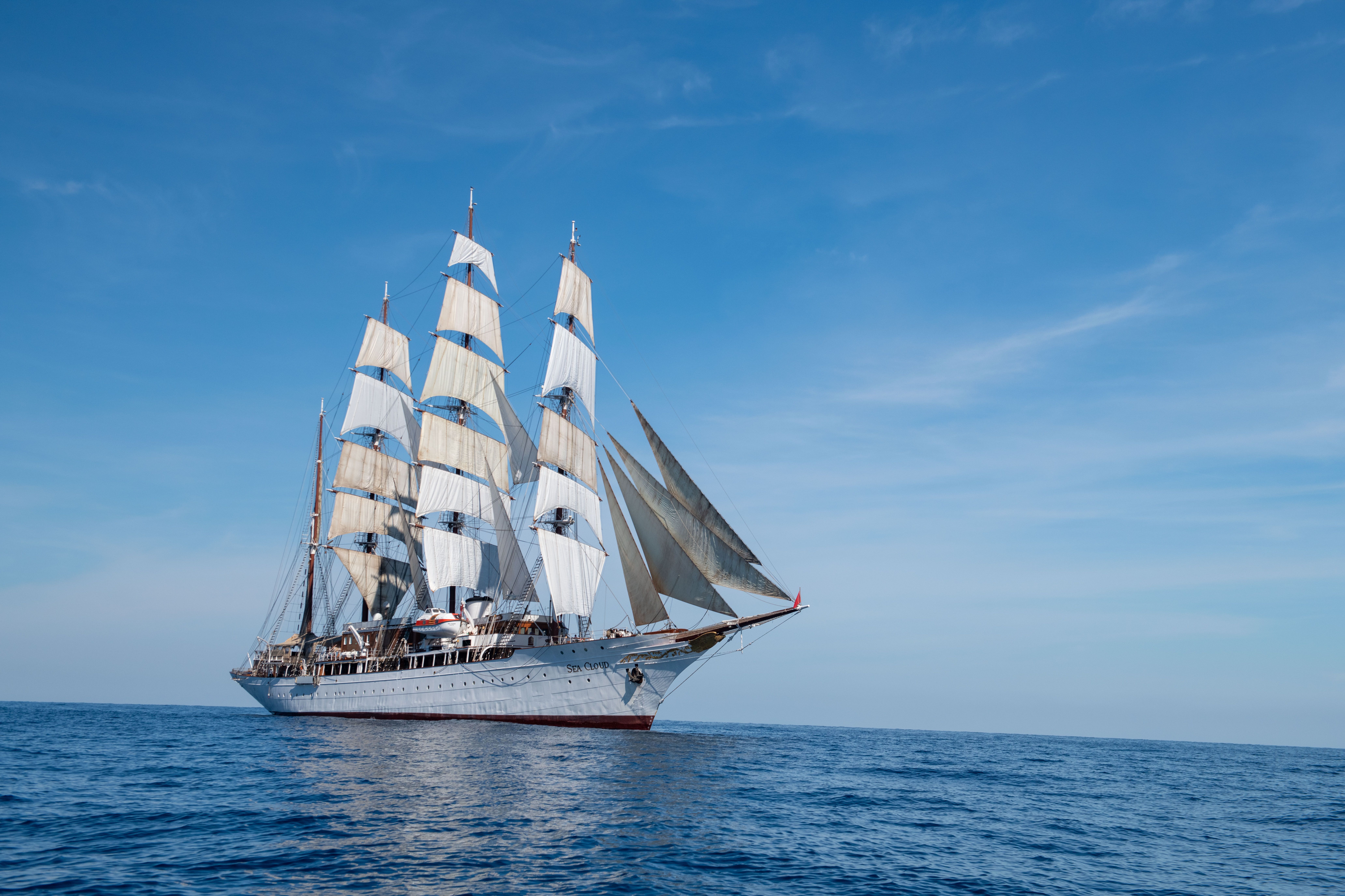 Today, we spent the day at sea crossing the Adriatic Sea from Dubrovnik, Croatia to our next port of Otranto, Italy. Our action-packed morning started with a presentation by the captain, who narrated the process of setting up the sails, which started at the spanker deck and moved to the bow. We watched as the 17 deck hands climbed up and down the masts to unclip the sails before using ropes to release them. In total, 26 sails were set in roughly an hour. Afterwards, guests were able to walk on the forward part of the bow and chat with crew members. Next, our photography instructor gave a presentation on smart phone photography. After lunch, we also did the Sea Cloud safari–a Zodiac cruise around the ship for photographs with a close-up look at the stern, where the boat’s original name can be seen. Our historian, Dr. Robyn Woodward, gave a presentation on The Normans Kingdom in the Sun later in the afternoon, followed by crepes at teatime. Before dinner, the captain hosted a cocktail party on the Lido Deck.