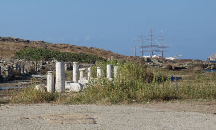Today began with a visit to Delso, the sacred center of the Cycladic world and the mythical birthplace of the divine twins, Artemis and Apollo. This uninhabited island is now a sprawling archaeological site and is a fascinating mix of archaic, classical, and Hellenistic remains. Our Greek guides, Effie and Roula, took us through the island’s complex history as we explored the ruins, from the seventh-century B.C. Terrace of the Lions to the mosaic-adorned private homes owned by wealthy second-century B.C. merchants. Some of the more detailed mosaics, as well as a wide range of marble sculptures and Hellenistic home furnishings, could be viewed at the island’s archaeological museum.