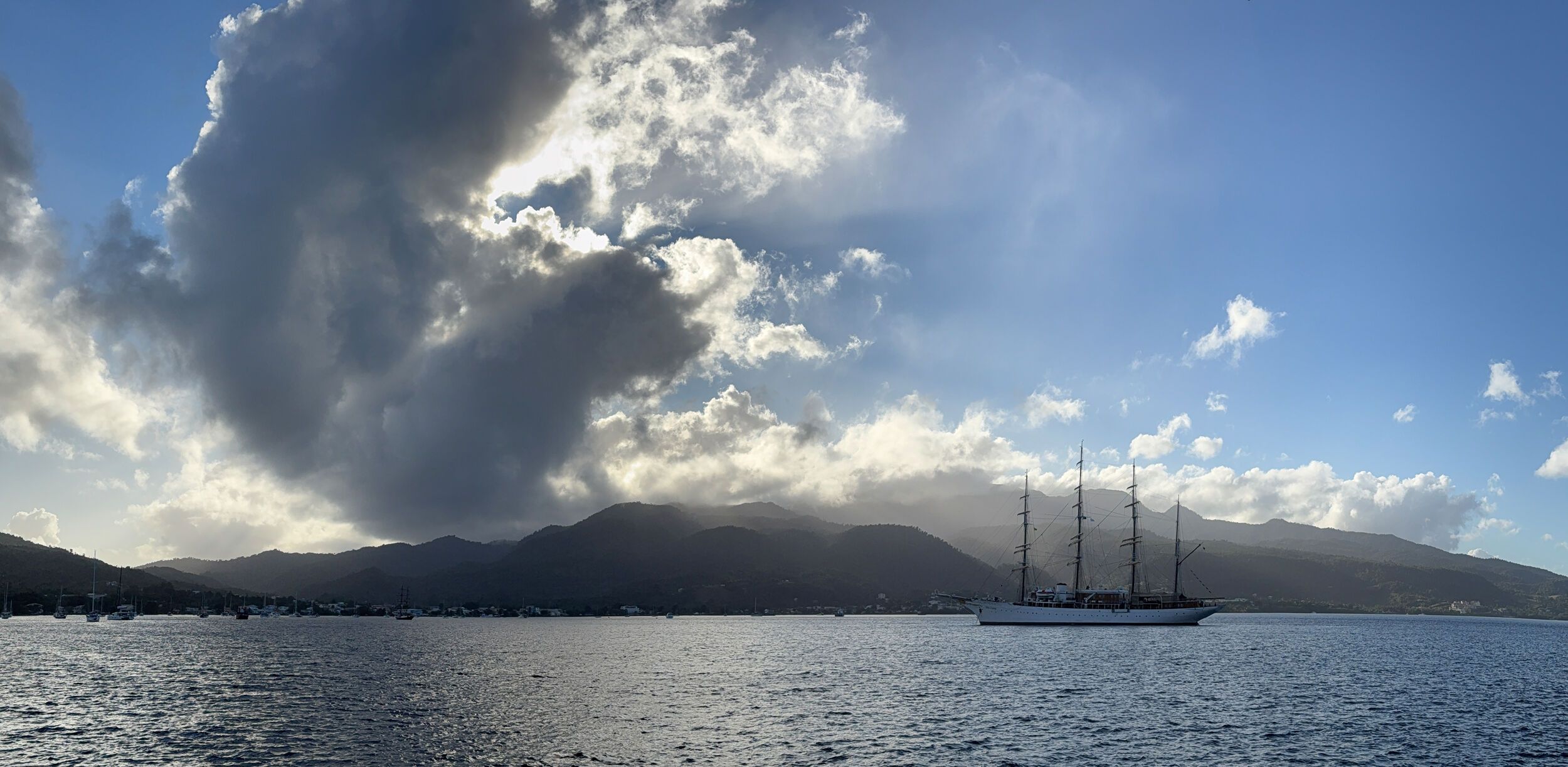 It was our first day at sea and a fabulous day for sailing. As we rounded the southwestern tip of Martinique, a prevailing easterly wind was blowing at 20 knots off the starboard beam. We deployed sails, our professional sailors 180’ above the decks on the main mast, and our historian Tom Heffernan gave a talk on the famous incident at Diamond Rock.