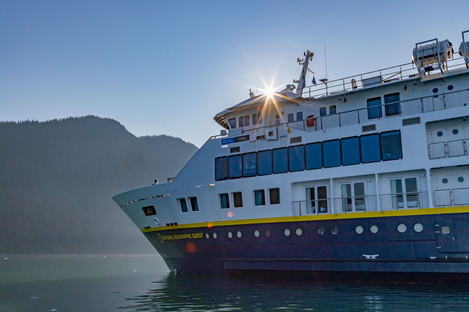 During lunch, National Geographic Sea Bird repositioned to an anchorage in the nearby Inian Islands. We boarded our inflatable boats to cruise through this productive area near the entrance to the Pacific Ocean. The amount of wildlife among these islets is incredible. Humpback whales nearly surrounded the boats as they worked the nearshore for small schooling fish. The deep phthalo green waters support enough sea life to feed hundreds of Steller sea lions, thousands of beautiful seabirds, and even the dozens of sea otters consuming urchins and crabs among the kelp forests.