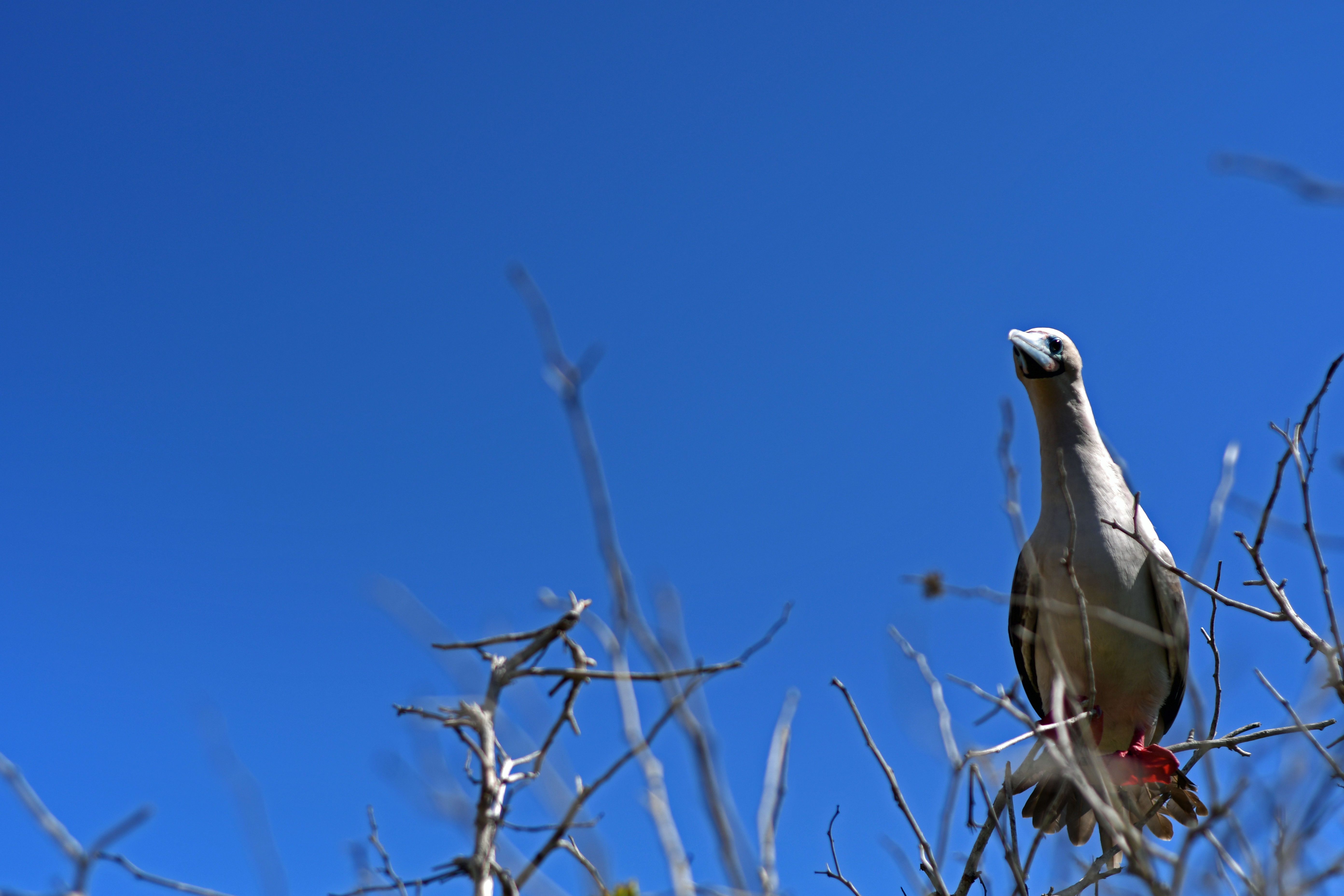 Sadly, our expedition aboard National Geographic Gemini is nearing its end. Our day began with a hike at the base of towering cliffs. A steep ascent led us to a plateau of a palo santo forest, sparse and otherworldly. Almost immediately, we were surrounded by red-footed boobies nesting in low trees and Nazca boobies on the ground. A highlight was spotting a short-eared owl perched silently among a lava crevice, camouflaged and hunting storm petrels. The calls of frigatebirds rang in the air, with their inflated red pouches on full display in a mating show. After our hike we enjoyed water activities, such as kayaking along the cliffs and snorkeling. In the late afternoon, we landed on the coral sand beach of Darwin Bay. Guests enjoyed a relaxing stroll along the shoreline bordered by mangroves and nesting bird colonies. The presence of swallow-tailed gulls, lava herons, and marine iguanas provided excellent photo opportunities.