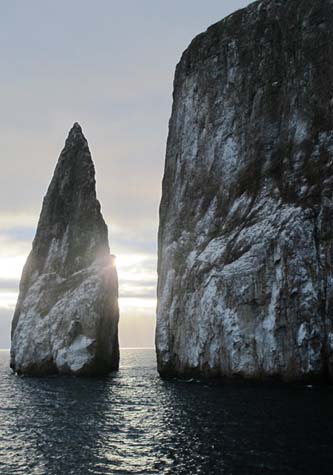 In the latter part of the afternoon we circumnavigated Kicker Rock to appreciate its size as well as its amazing wildlife once more. Frigates, Galápagos shearwaters, blue-footed and Nazca boobies, brown noddies and brown pelicans, swallow-tailed gulls, and red-billed tropic birds find a safe nesting and perching place here, totally safe from any land predators. The day was coming to an end, and so was our fantastic expedition in the Galápagos Islands. At sunset and with the silhouette of Kicker Rock illuminated by a beautiful yellow light we realized what a privilege it is to be here in this one of the last paradises on Earth, the Enchanted Islands.