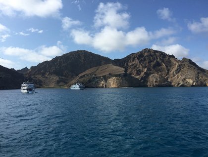 Next we snorkeled at Kicker Rock, one the better places for the activity. This is what’s left of a huge tuff cone and has vertical drop offs going down 60 meters. We saw hammerhead, Galapagos and white tip reef sharks as well as several Pacific green turtles. Sundown was spent at the sun deck enjoying ceviche and a cocktail. Another wonderful day comes to an end in paradise.