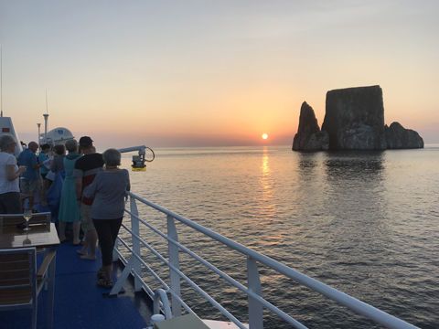Later we reposition to Kicker Rock, an impressive tuff formation standing massively out of the shoreline. We circumnavigate as the sun is setting, remembering this is the place where we just snorkeled with Galápagos sharks, turtles, fish and friends.