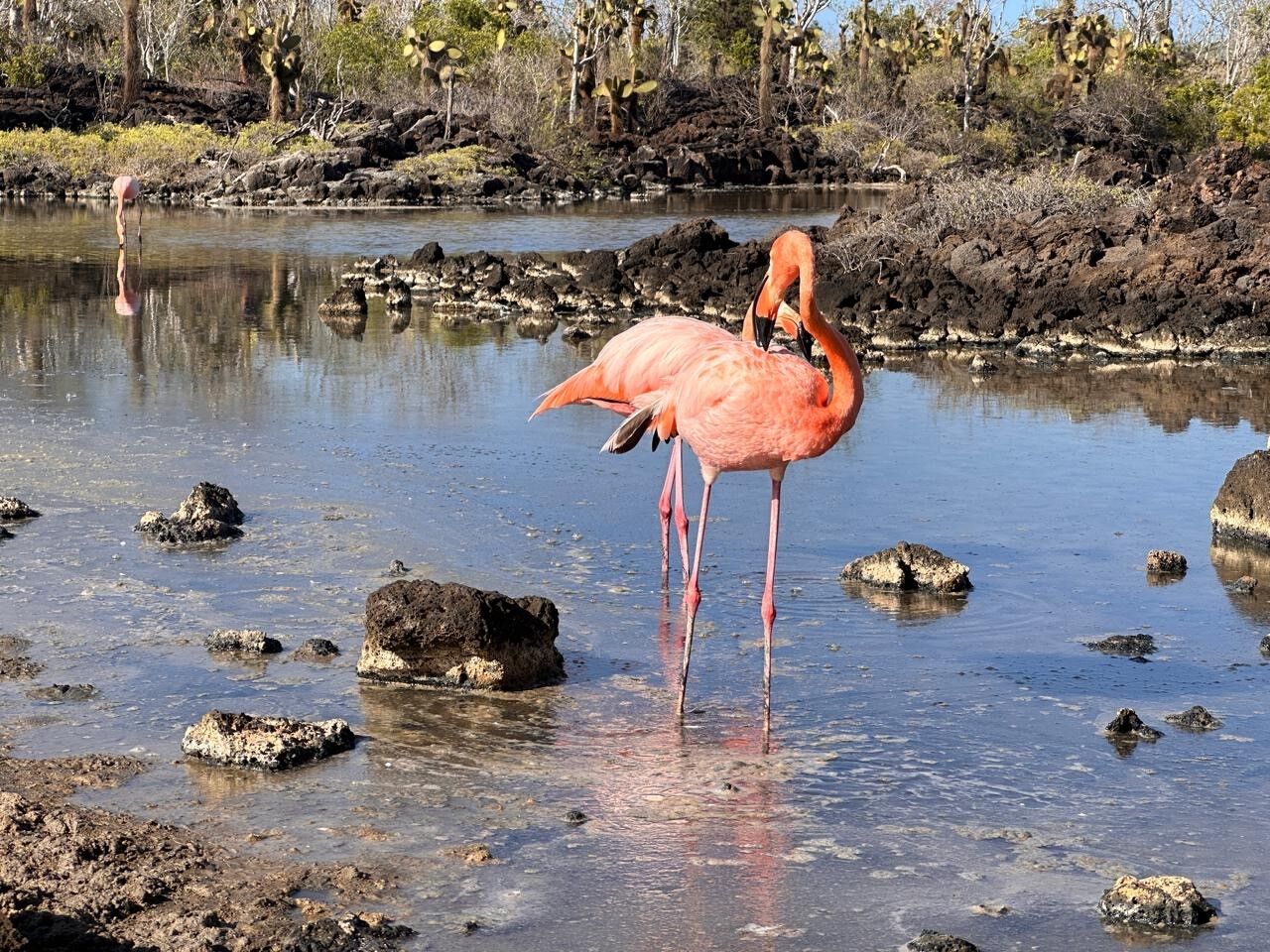 We started the day with excitement as we landed on the beautiful, pristine coast of Isla Genovesa - a true birder’s dream. Along the sandy beaches and steep cliffs of Darwin Bay, we were surrounded by an incredible array of birdlife. Frigatebirds soared closely overhead with their red pouches on full display, while Nazca and blue-footed boobies nested along the rocky ledges. Swallow-tailed gulls called out as we walked past. In the distance, we saw the stoic and elusive short-eared owl. The island was alive with color, sound, and constant movement. Between our excursions to Isla Genovesa, we snorkeled near Prince Philip’s Steps and discovered a vibrant world beneath the waves. Schools of fish swirled around us, a fur seal turned in the water as if dancing on cue, and sea lions relaxed nearby. As our last snorkeling adventure came to a close, we spotted a sea turtle resting calmly in a crevice. As the sun retreated into the sky on our last return to National Geographic Endeavor II, we reflected on the sheer magnitude of what we witnessed on our last full day. Isla Genovesa, like the other islands, gave us a connection to a sacred world. The harmony between land, sea, and sky reminded us how deeply interconnected, vital, and fragile these ecosystems are. Watching birds tend to their nests and marine life swim effortlessly, we were struck by how little space there is between wonder and reverence. We recognized that our journey wasn’t just about observing unique wildlife, it was about feeling part of something grander and beautifully ancient.