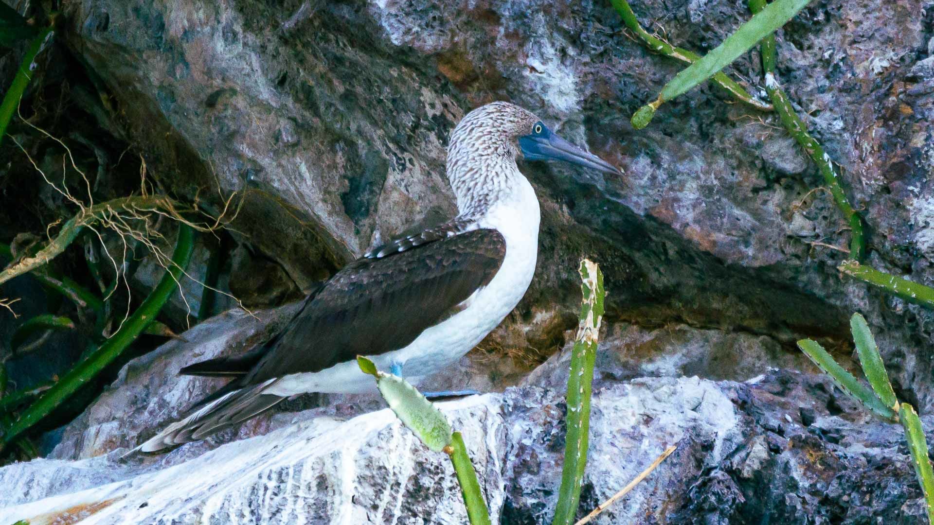 Sadly, our expedition aboard National Geographic Gemini is nearing its end. Our day began with a hike at the base of towering cliffs. A steep ascent led us to a plateau of a palo santo forest, sparse and otherworldly. Almost immediately, we were surrounded by red-footed boobies nesting in low trees and Nazca boobies on the ground. A highlight was spotting a short-eared owl perched silently among a lava crevice, camouflaged and hunting storm petrels. The calls of frigatebirds rang in the air, with their inflated red pouches on full display in a mating show. After our hike we enjoyed water activities, such as kayaking along the cliffs and snorkeling. In the late afternoon, we landed on the coral sand beach of Darwin Bay. Guests enjoyed a relaxing stroll along the shoreline bordered by mangroves and nesting bird colonies. The presence of swallow-tailed gulls, lava herons, and marine iguanas provided excellent photo opportunities.