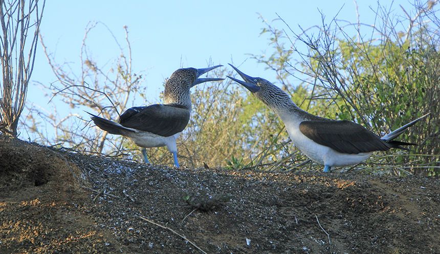 For this morning, we arranged an early sunrise party to San Esteban Island, which lies in the Midriff area of the Gulf of California. Facing southeast, the wide Arroyo Limantour is the best location to contemplate the sun rising over the mainland of Mexico. After breakfast, our guest and naturalists walked on the arroyo in search of the “pinto” or piebald chuckwalla, an endemic, “gigantic” version of the normal, mainland form of this lizard, and the spiny-tailed iguana, which constitute another endemic species. These iguanas climb up to the tops of cardon cacti to get the nutritious flowers and fruits. San Esteban has long been a very isolated island, and many of its reptiles and cacti are unique. Therefore it is regarded a “laboratory of evolution” by biologists. The waters around, though cold and with complicated currents, shelter a great diversity of marine wildlife too, so our expedition diver Maya ventured in the sea and captured this biodiversity with a submersible video camera. At noon, the National Geographic Sea Bird sailed north for the afternoon activities, and we encountered bottle-nosed and long-beaked common dolphins in the way. We anchored at Rasa, a little island that is the colonial breeding site for elegant and royal terns and Heermann’s gulls, and made cruises around it on the expedition landing craft. During these, guests and staff were enchanted with the number of nesting seabirds and their vocalizations (that filled the air and our ears with metal-like and laughing-like sounds). Dr. Enriqueta Velarde (a leading researcher and ornithologist of Rasa) joined us for dinner and made a presentation of her work on the island. We learnt a lot today and had a lot of fun!