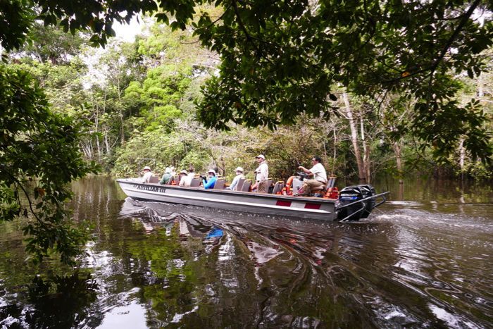 We set out on our morning skiff excursions under a brooding sky that quickly turned into a torrential downpour; reminding us how the waters we’ve been navigating can rise so high in the wet season. Photo instructor Michael Nolan and I led an iPhone photography class while the rains died down and then we headed to the small village of San Francisco de Loreto. There we spent time meeting the local people and getting a glimpse of daily life along the Marañon River. Before lunch we toasted with pisco sours while passing the official head of the Amazon River at the confluence of the Marañon and Ucayali Rivers. The afternoon gave us an opportunity to take a skiff ride on Lake Clavero.