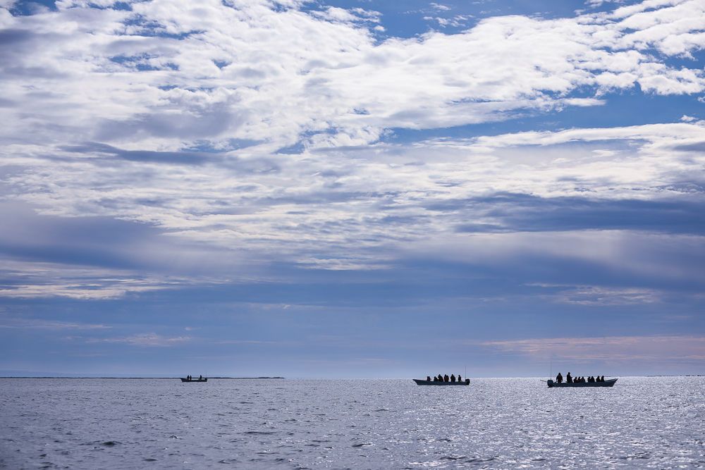 Boarding the pangas, we ventured out into the territory of desert whales with hopes of finding gray whale cows and their calves. Searching for blows, we found many adults and calves spread throughout the lagoon, some active the surface and playing in the surf, others rolling on their sides and sucking up mud. Many were overtaken with excitement every time the whales came close enough to see their white and gray bodies in the waters beside our boat. We soaked up every moment with these majestic creatures. What a privilege it is to have such an opportunity.
