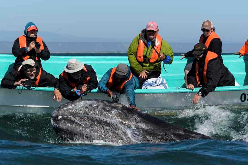 There are always illuminating experiences to be had wherever you are in Baja, but this is especially the case when out on the bay to encounter the gray whales that use these warm, shallow waters for birth and rearing. From early morning to late afternoon we had rich and lasting encounters with these whales. Most were cows and calves who stayed near the boats, allowing guests to place their hands upon, even pet, their rostra before descending and resurfacing again. This continued all throughout the day—truly a once-in-a-lifetime experience for all of us.