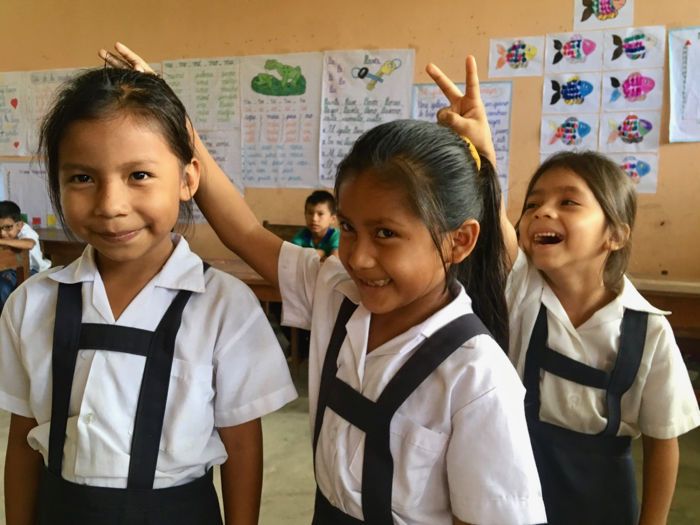 Today dawned bright and sunny; we enjoyed a delicious and bountiful breakfast, and afterwards gathered in the lounge for a presentation by Emira about the non-profit organization Minga Peru. We boarded the skiffs and headed up river to visit San Jorge village. The guides lead us up a steep cement stairway to the elementary school where we talked with the students and teachers. The kids shyly told us what they dreamed of being when they finished their schooling, and we told them what had been our professions.