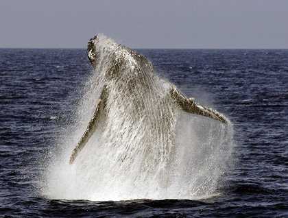 With the dawn came a small breaching humpback whale soon followed by the surfacing of its massive mom. Over and over the calf made its leap, but progressively the breaches became less spectacular as fatigue set into the enthusiastic jumper. Two other calves jumped out as we made our way toward Land’s End. Golden light illuminated the high granitic cliffs and the famous rock arch that defines this place like no other.