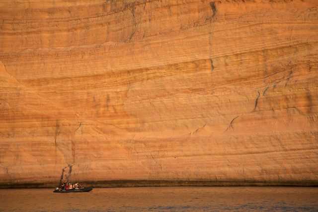 National Geographic Sea Lion anchored off the eastern shore of San Jose Island long before sunrise and many adventurous and brave photographers boarded our expedition landing craft to take full advantage of the pre-dawn early morning light shining over the beautiful sandstone cliffs at Punta Colorada. Then we all explored the island’s arroyos and snorkeled at the base of the cliff, while we SCUBA divers took underwater video at the neighboring Las Animas Island for everyone to see. We finished the day searching for marine life in the open waters finding mobula rays, numerous marine birds, and even a solitary hammerhead shark.