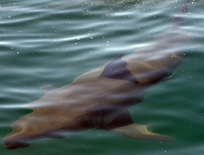 On our way to Santa Rosalía a group of long-beaked common dolphins joined us by bow riding and surfing in our wake. A few made leaps seconds before the rapid-fire shutters of cameras were heard.