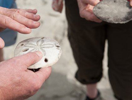 The beach lived up to its namesake. Thousands of sand dollars covered the high tide line of the beach. Sand dollars are echinoderms, invertebrates, related to sea urchins, that bury themselves halfway into the sand bottom just beyond the wave zone and feed on suspended plankton and detritus. When they die their hard endoskeletons wash up on shore to the delight of barefoot beachcombers.