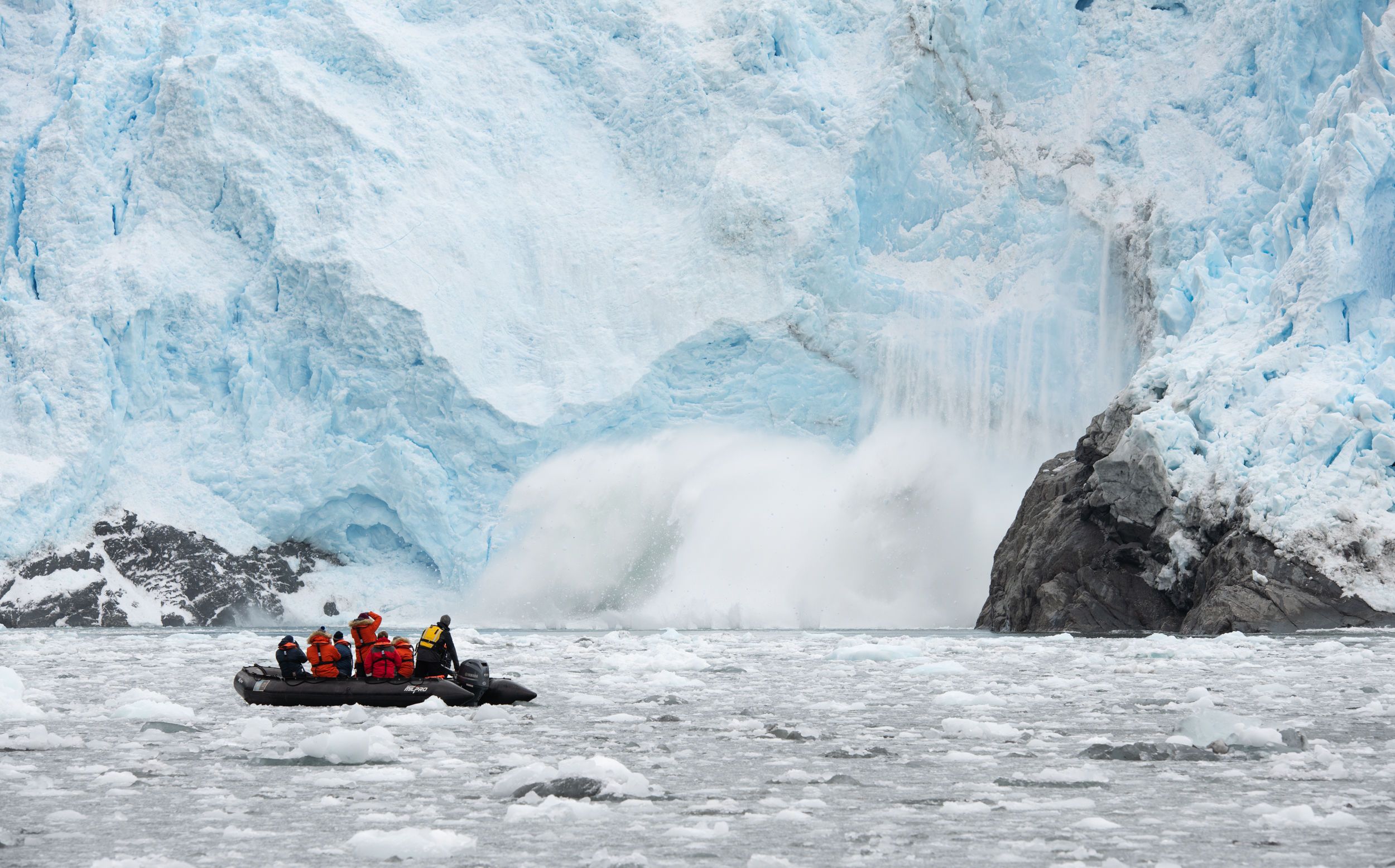 After lunch, several guests used kayaks and paddle boards to explore the shoreline. A special experience for those on Zodiac cruises was to get up close to a pod of Risso’s dolphins and watch their lively acrobatics as they pursued a school of bait fish. Interspersed with the dolphins were many sea lions, and of course, the ever-watchful gulls looking for scraps. The day was a photographer’s dream with rays of sun streaming through misty canyons, lending a magical veneer to a magical day.